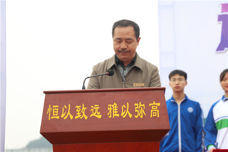 縣教育局副局長(zhǎng)楊清輝先生講話(huà),他強(qiáng)調(diào)參加體育運(yùn)動(dòng)不僅僅是一場(chǎng)體能、技術(shù)、水平的較量,是對(duì)同學(xué)們的生活品位、精神品格、意志品質(zhì)的一次大檢閱。運(yùn)動(dòng)不僅僅是為了健康,它更是充滿(mǎn)靈動(dòng)的生活時(shí)尚,是一種充滿(mǎn)韻律的生活情趣,是一種充滿(mǎn)活力的生活態(tài)度。