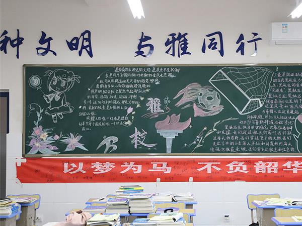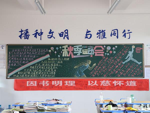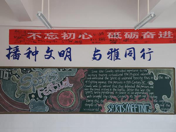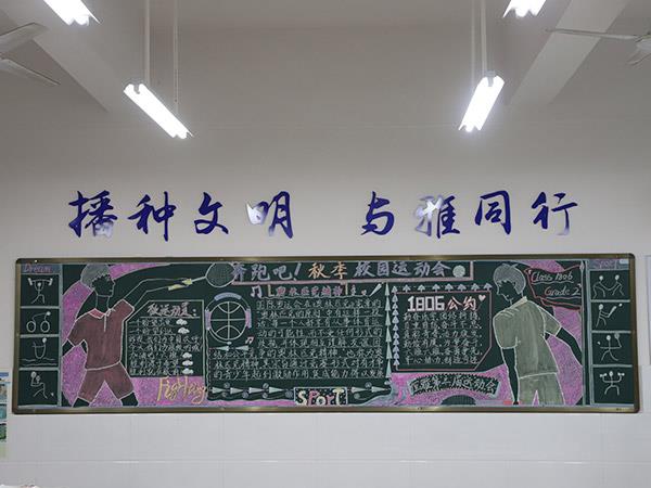 為貫徹《學(xué)校體育工作條例》,弘揚(yáng)體育精神,活躍學(xué)校體育文化生活,增進(jìn)學(xué)生、教職工身心健康,更好地展現(xiàn)恒雅師生的“精氣神”,學(xué)校舉辦了“運(yùn)動(dòng) 健康 文明 快樂(lè)”為主題的第三屆校園體育節(jié)。在校辦公室、教務(wù)處、學(xué)生處、團(tuán)委精心策劃下,開(kāi)展了以運(yùn)動(dòng)會(huì)為主題的黑板報(bào)評(píng)比活動(dòng),一時(shí)間仿佛運(yùn)動(dòng)會(huì)賽場(chǎng)上的一幕幕展現(xiàn)在了各班的板報(bào)上,活靈活現(xiàn)。各班同學(xué)充分發(fā)揮創(chuàng)造才能,密切配合,創(chuàng)作出了一幅幅繪畫(huà)精美、內(nèi)容充實(shí)的黑板報(bào),令人大飽眼福!